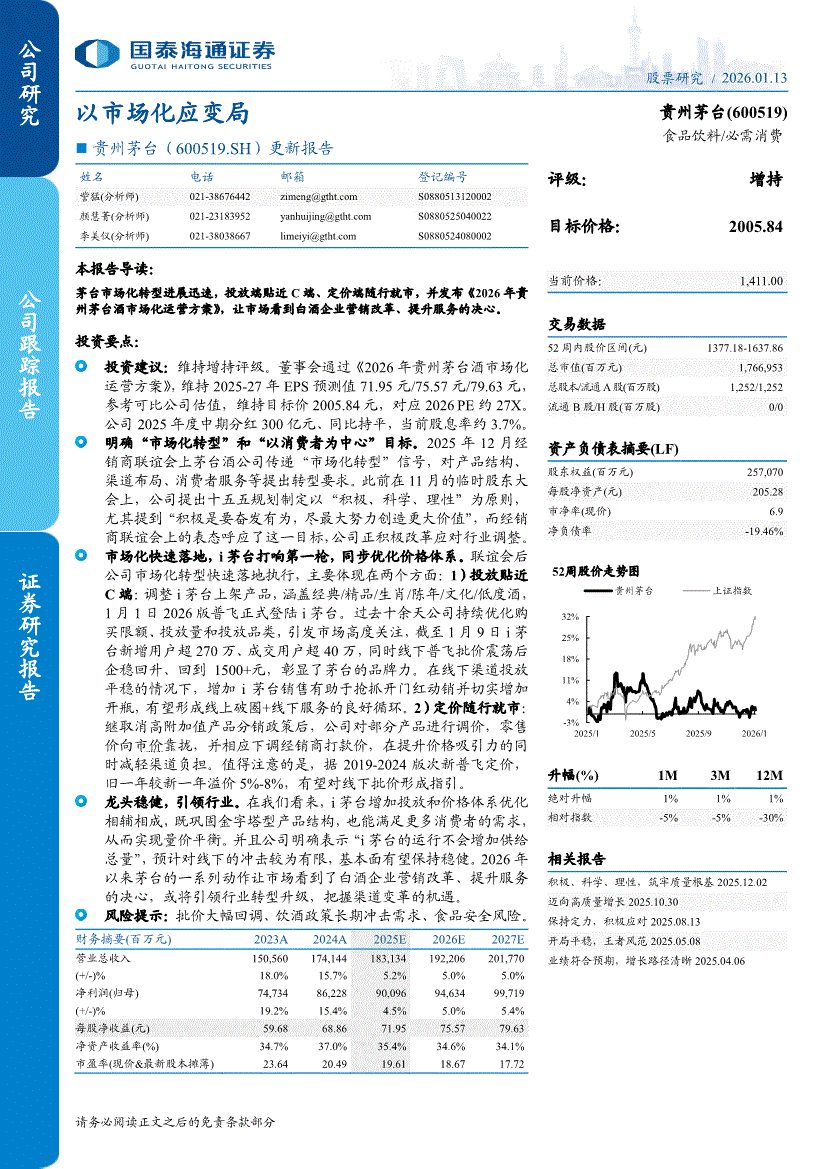 贵州茅台:国泰海通证券-贵州茅台-600519-更新报告:以市场化应变局-260113
