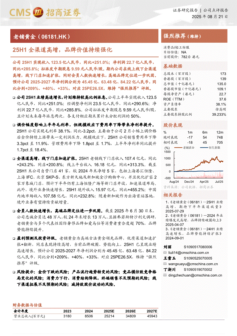 老铺黄金:招商证券-老铺黄金-6181.HK-25H1全渠道高增,品牌价值持续强化-250821