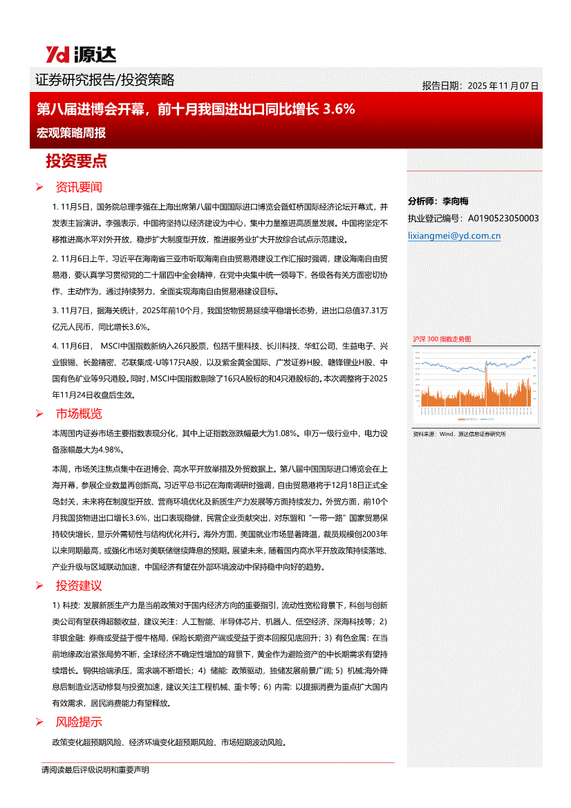 源达信息-宏观策略周报:第八届进博会开幕,前十月我国进出口同比增长3.6pct-251107