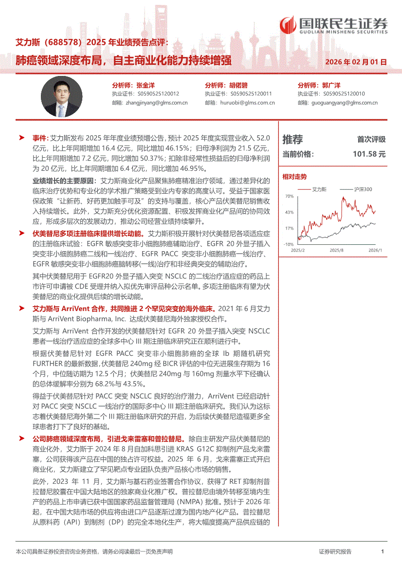 艾力斯:国联民生证券-艾力斯-688578-2025年业绩预告点评:肺癌领域深度布局,自主商业化能力持续增强-260201