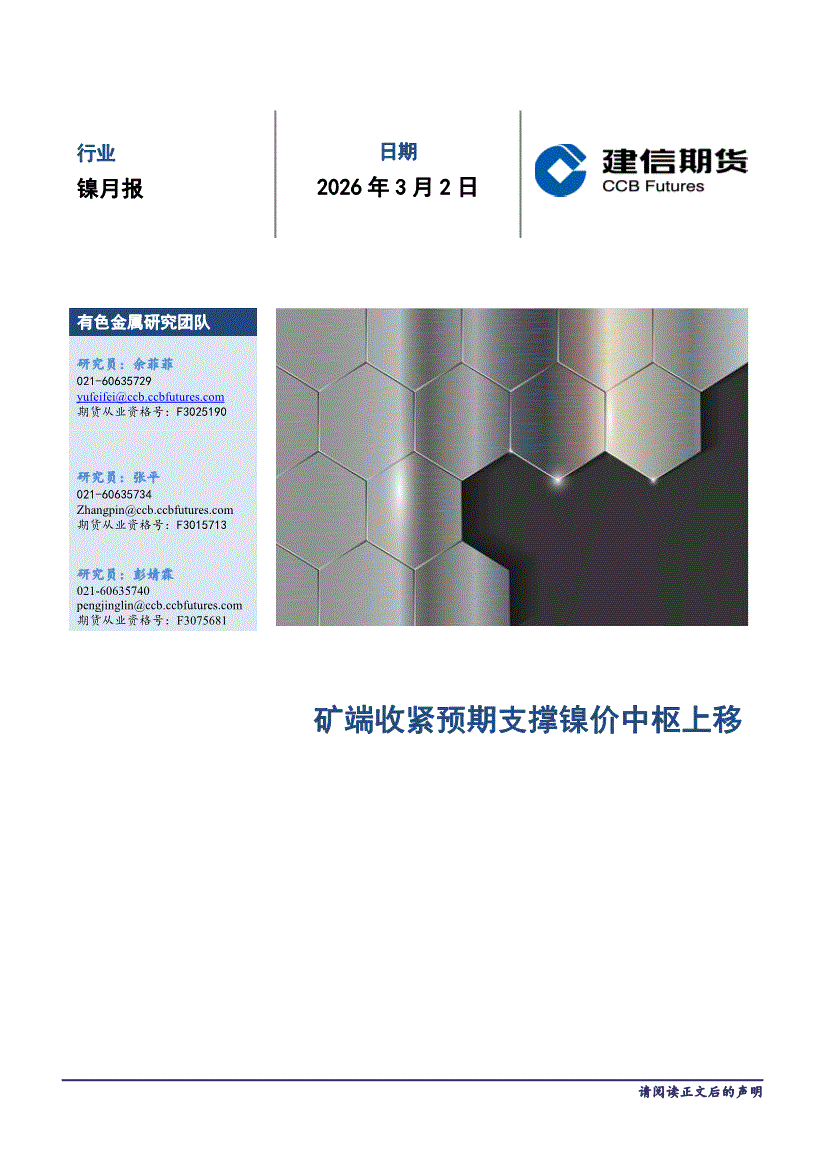 建信期货-镍月报:矿端收紧预期支撑镍价中枢上移-260302