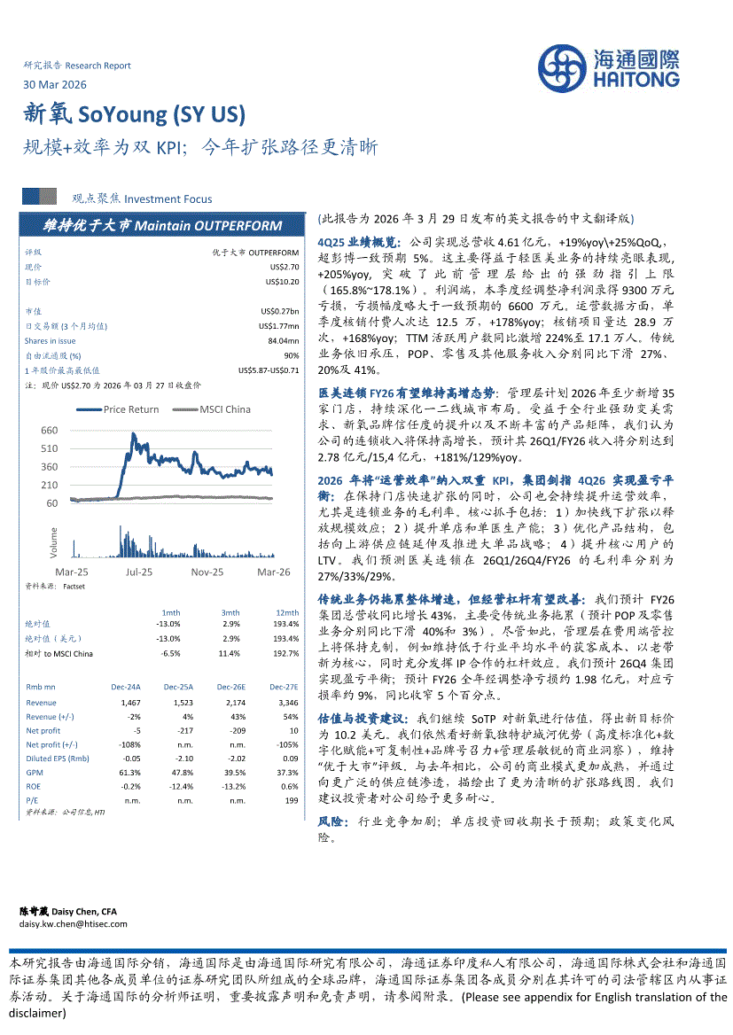 新氧SoYoung:海通国际-新氧SoYoung-SY.US-规模+效率为双KPI,今年扩张路径更清晰-260330