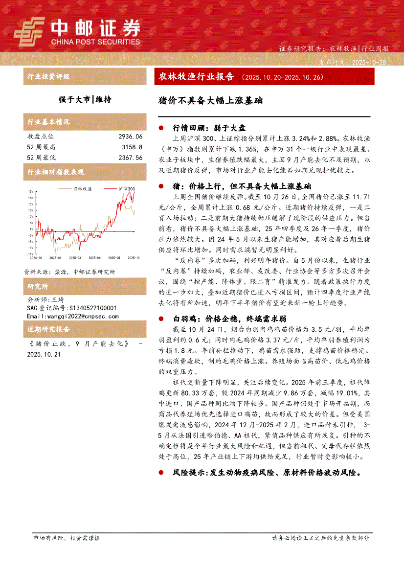 农林牧渔行业:中邮证券-农林牧渔行业周报:猪价不具备大幅上涨基础-251028