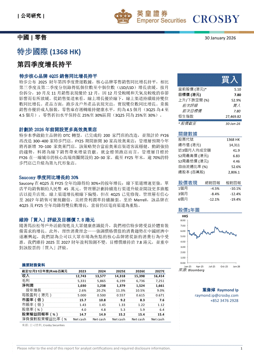 特步国际:英皇证券-特步国际-1368.HK-第四季度增长持平-260130