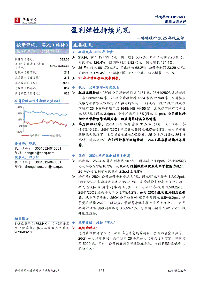 鸣鸣很忙:华安证券-鸣鸣很忙-1768.HK-2025年报点评:盈利弹性持续兑现-260407