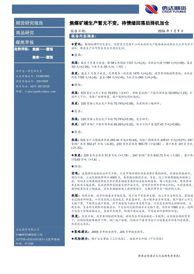 信达期货-煤焦早报:焦煤矿端生产暂无不变,待情绪回落后择机加仓-260109