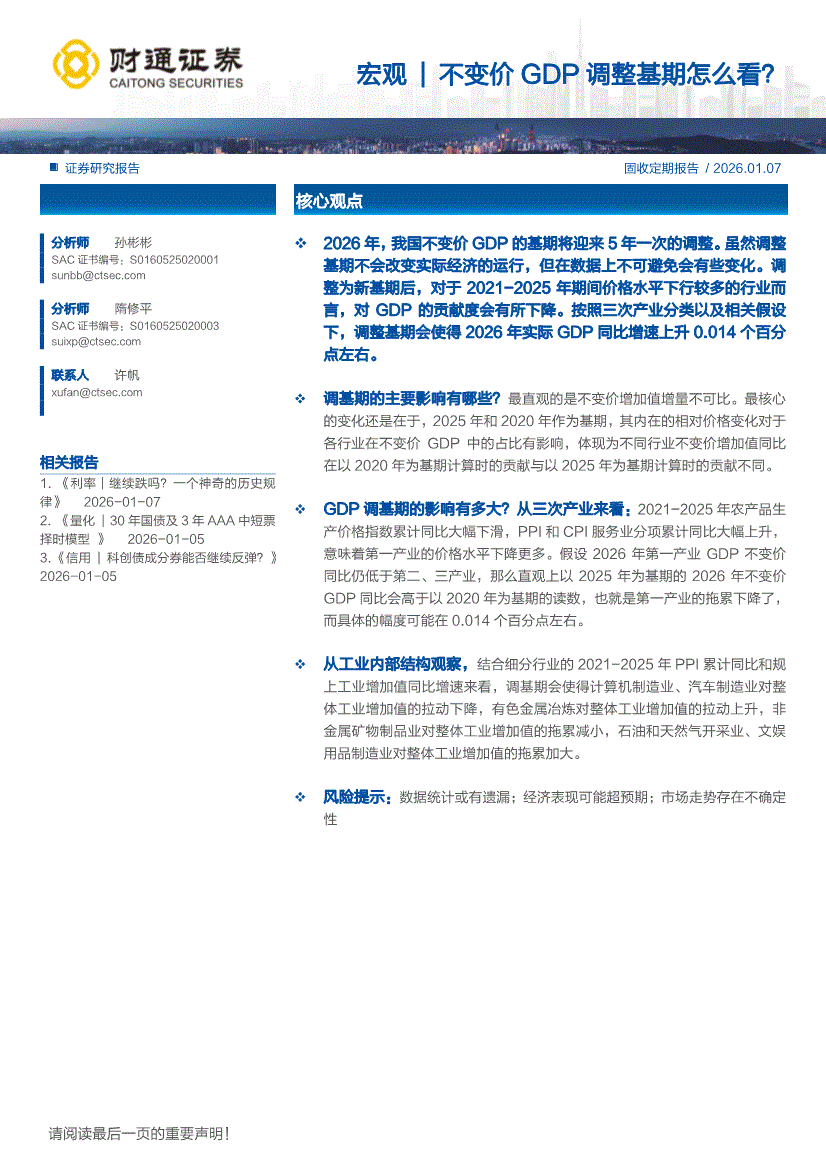 财通证券-宏观|不变价GDP调整基期怎么看?-260107