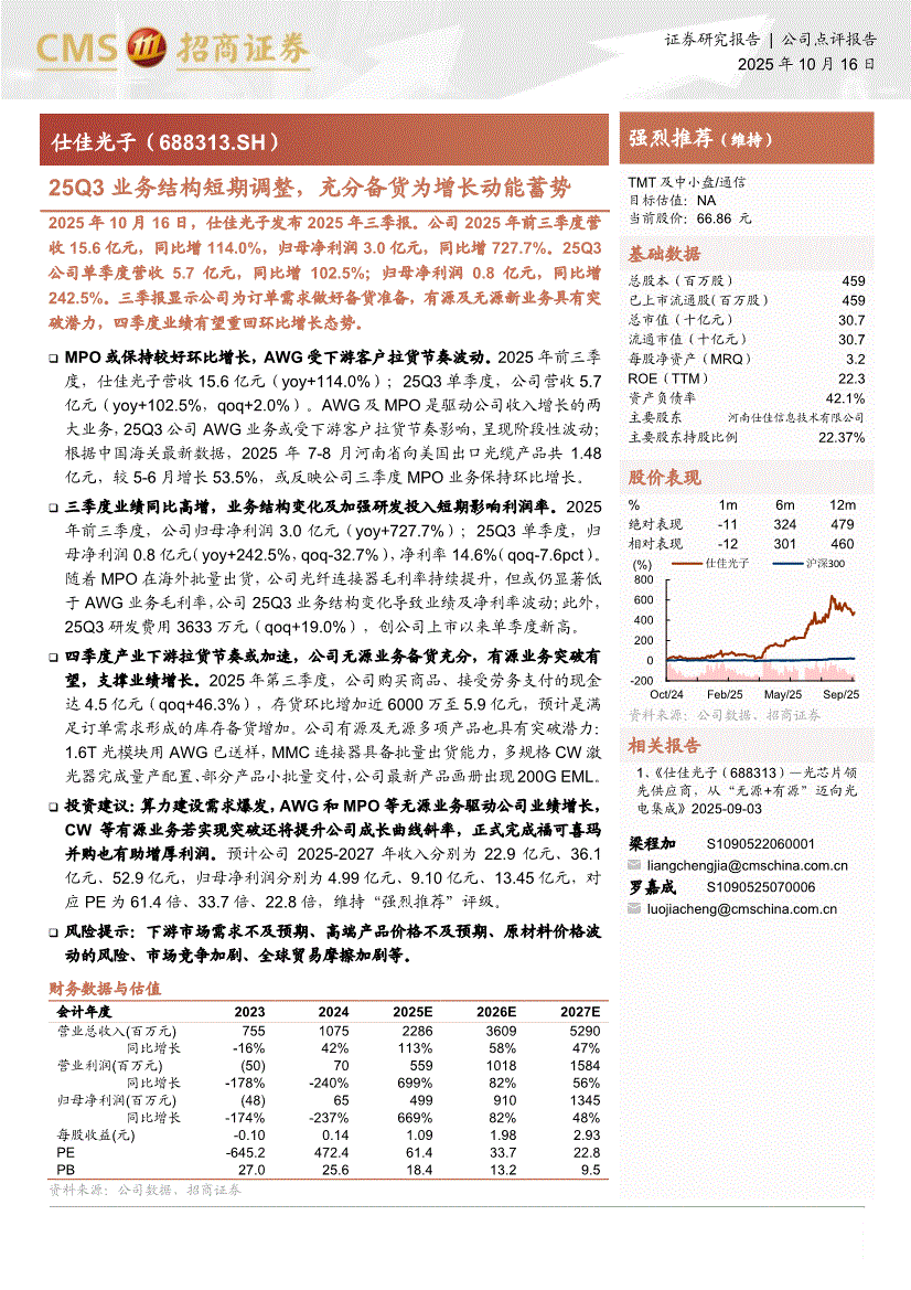 仕佳光子:招商证券-仕佳光子-688313-25Q3业务结构短期调整,充分备货为增长动能蓄势-251016