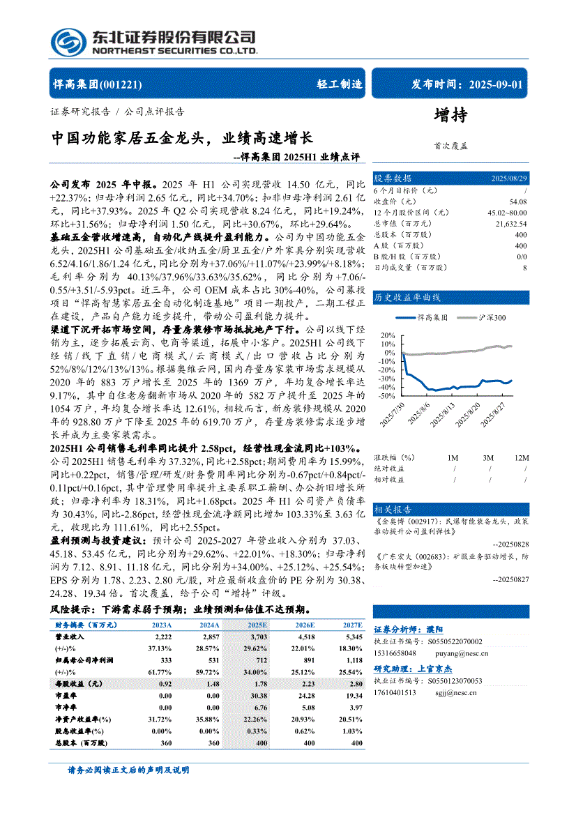 悍高集团:东北证券-悍高集团-001221-2025H1业绩点评:中国功能家居五金龙头,业绩高速增长-250901