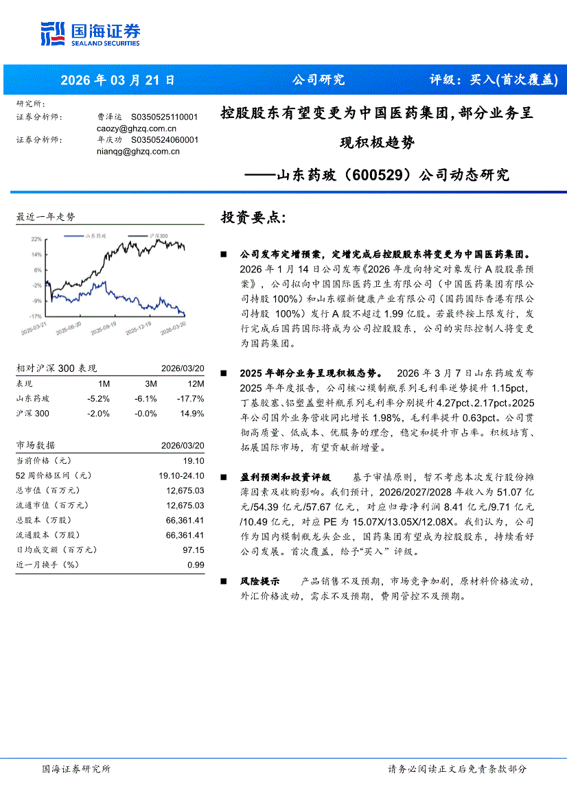 山东药玻:国海证券-山东药玻-600529-公司动态研究:控股股东有望变更为中国医药集团,部分业务呈现积极趋势-260321
