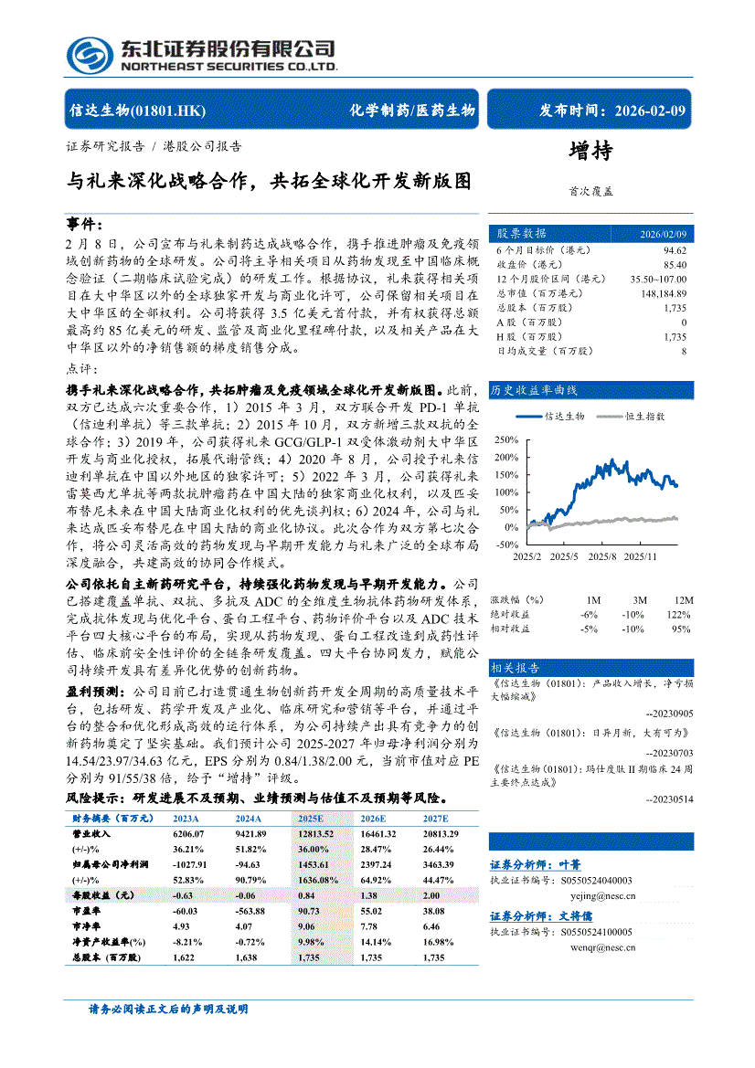 信达生物:东北证券-信达生物-1801.HK-与礼来深化战略合作,共拓全球化开发新版图-260209