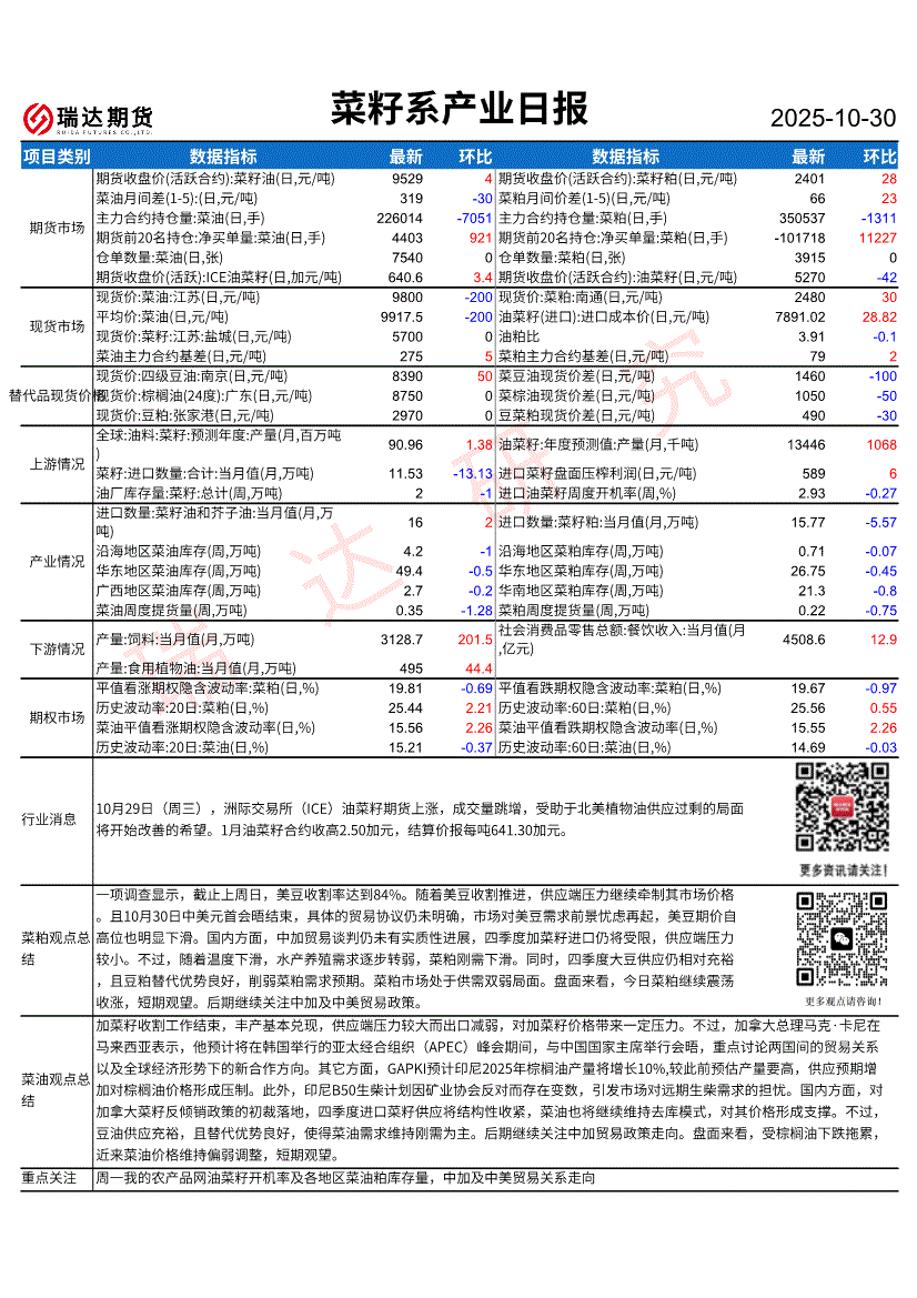 瑞达期货-菜籽系产业日报-251030