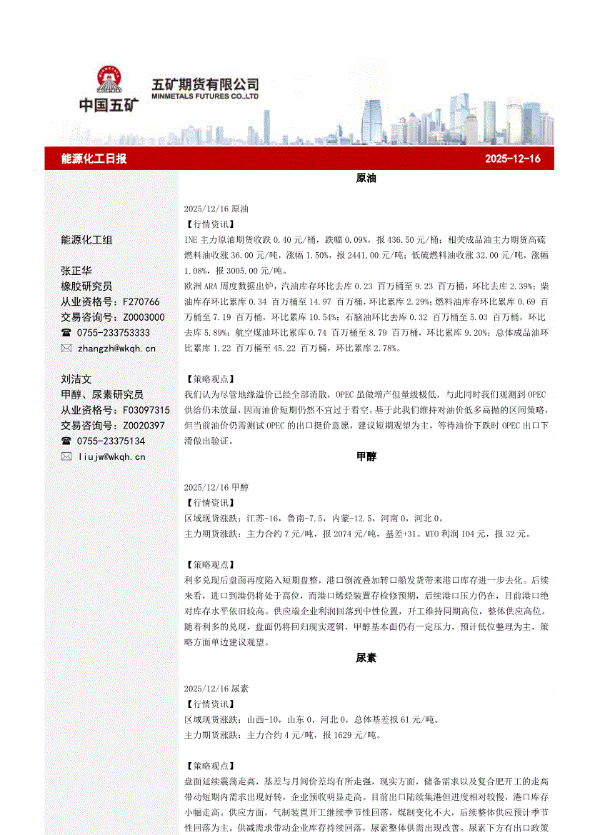 五矿期货-甲醇专题报告:01之前仍存压力-251210