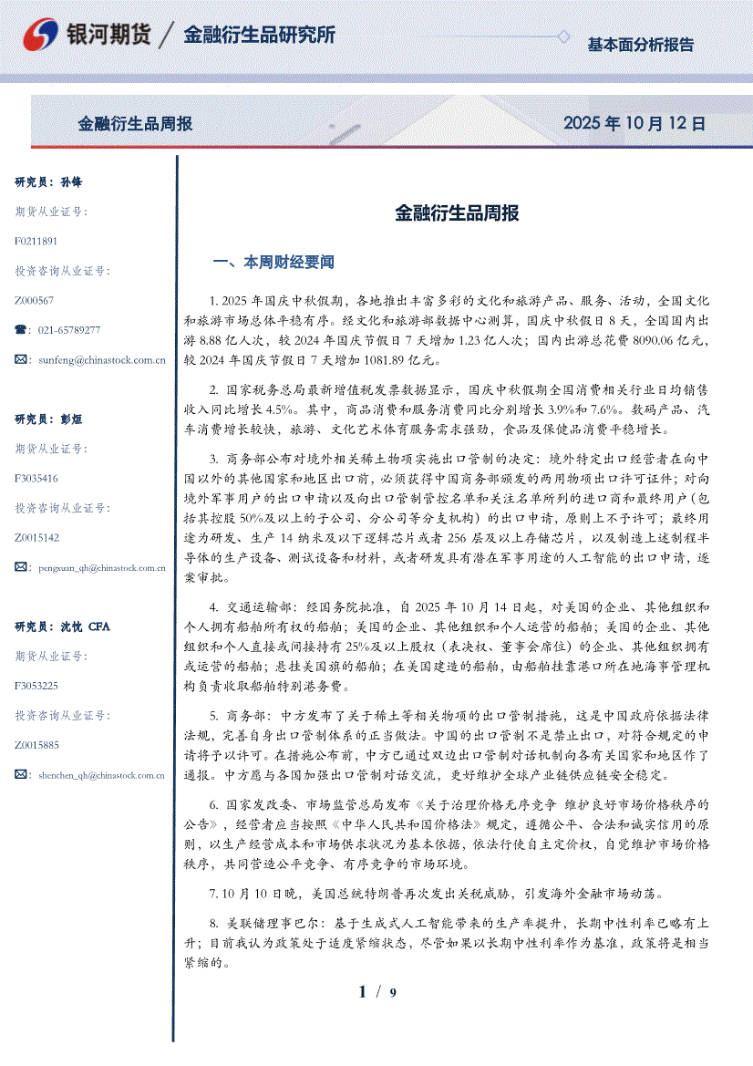 银河期货-国庆期间重要信息汇总及节后金融市场展望-251008