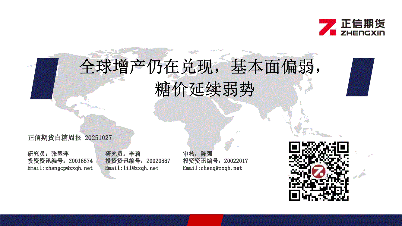 正信期货-白糖周报:全球增产仍在兑现,基本面偏弱,糖价延续弱势-251027