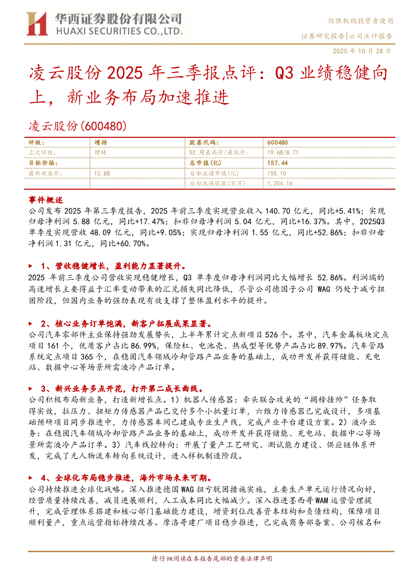 凌云股份:华西证券-凌云股份-600480-2025年三季报点评:Q3业绩稳健向上,新业务布局加速推进-251028