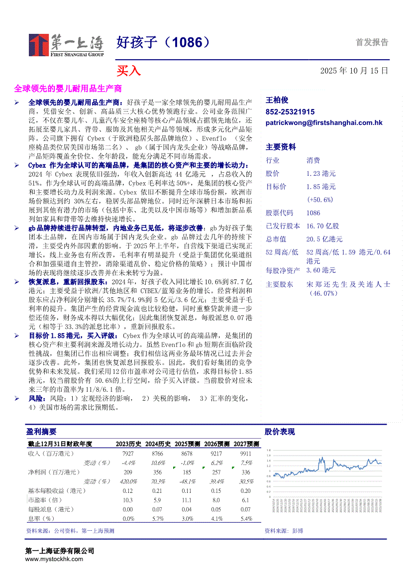 好孩子:第一上海-好孩子-1086.HK-全球领先的婴儿耐用品生产商-251015