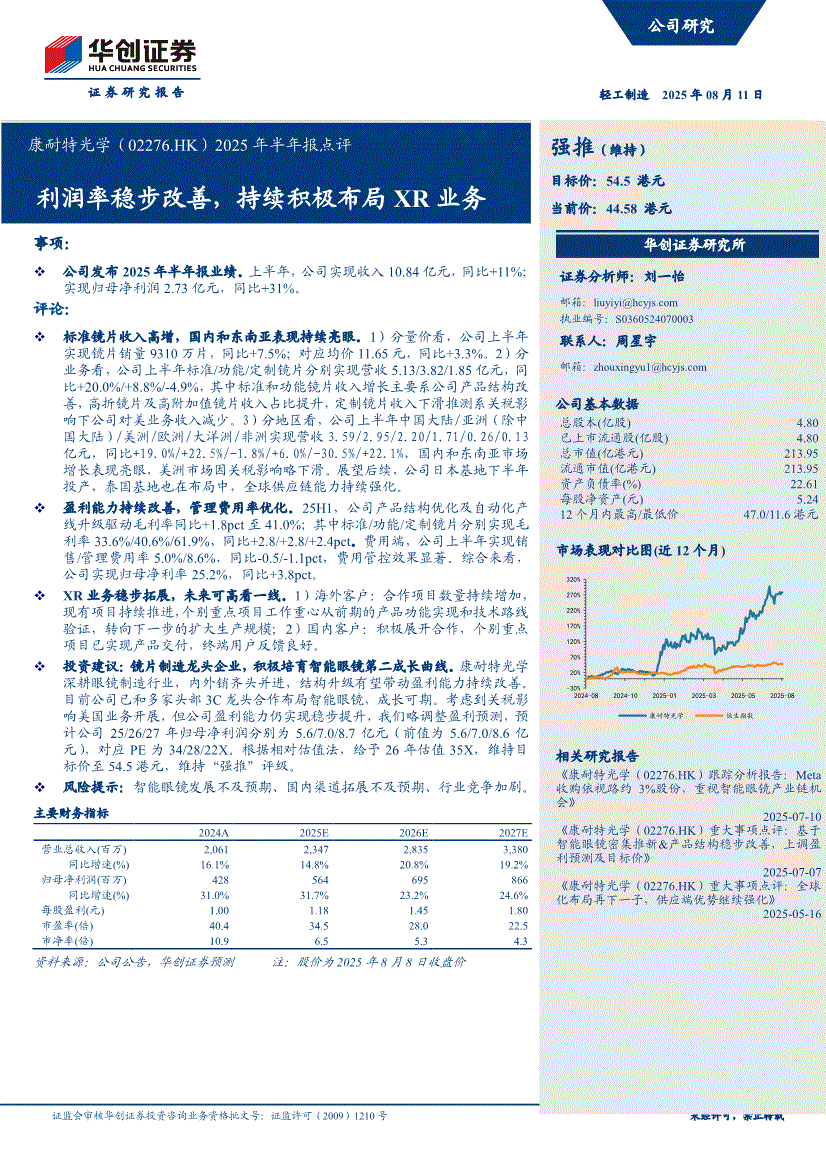 康耐特光学:华创证券-康耐特光学-2276.HK-2025年半年报点评:利润率稳步改善,持续积极布局XR业务-250811