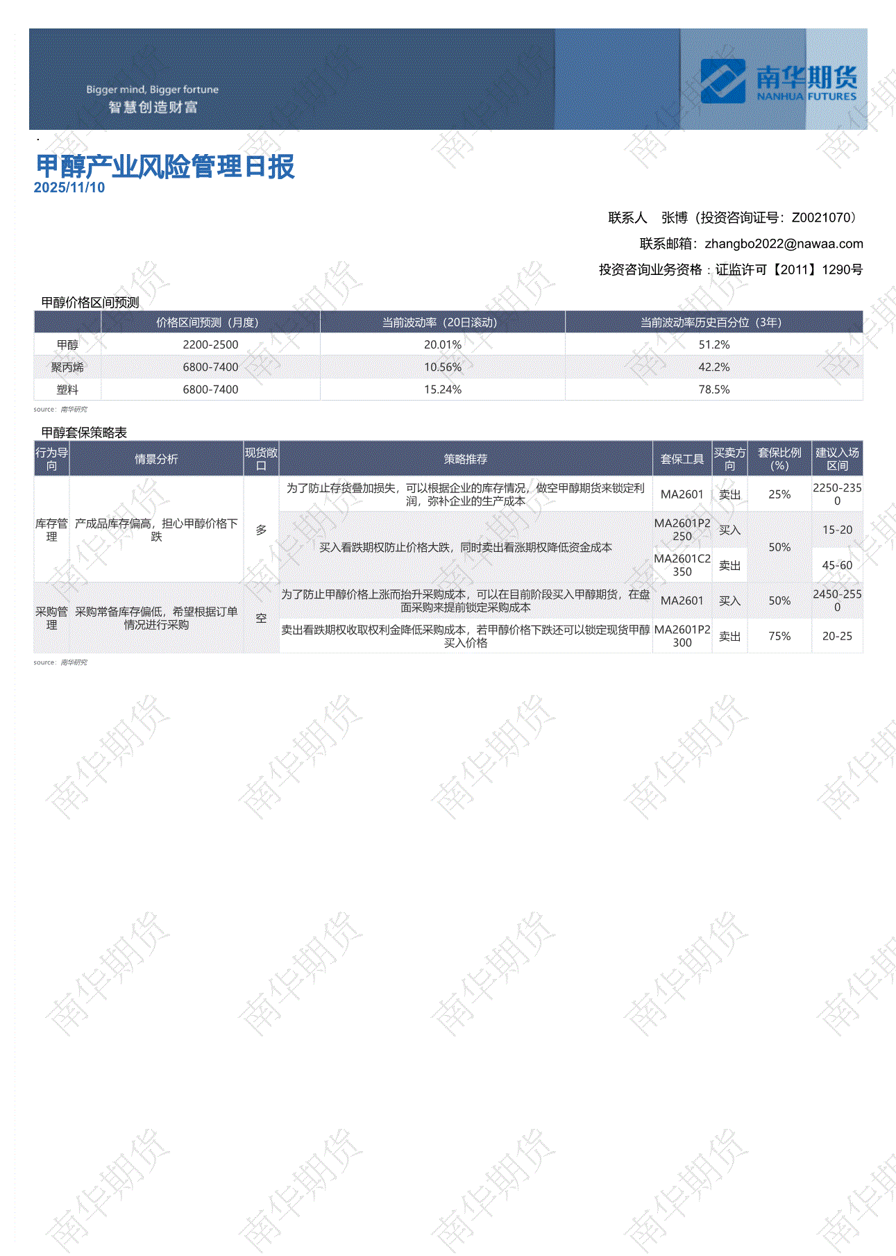 南华期货-甲醇产业周报:01维持弱预期-251130
