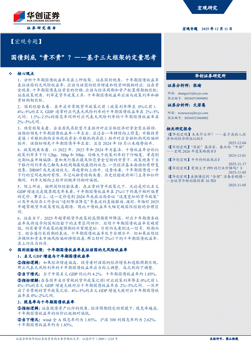 华创证券-【宏观专题】国债到底“贵不贵”?——基于三大框架的定量思考-251211