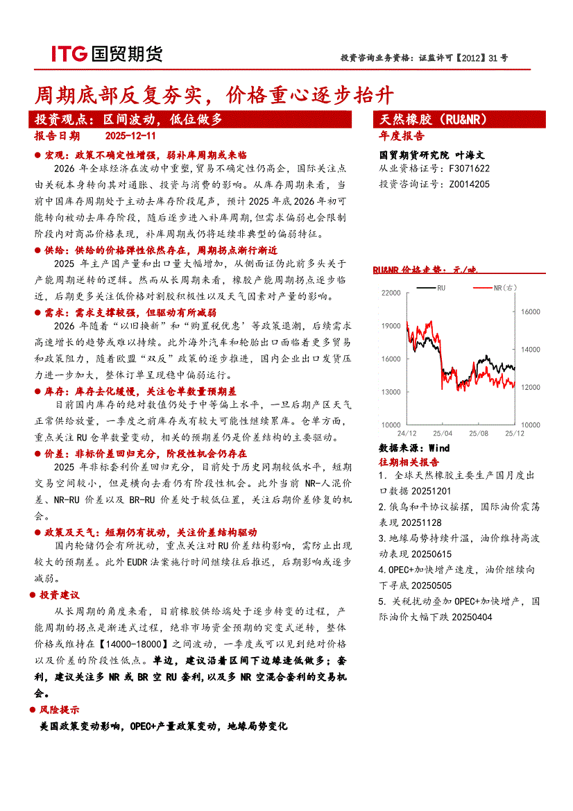国贸期货-天然橡胶(RU&NR)年度报告:周期底部反复夯实,价格重心逐步抬升-251211