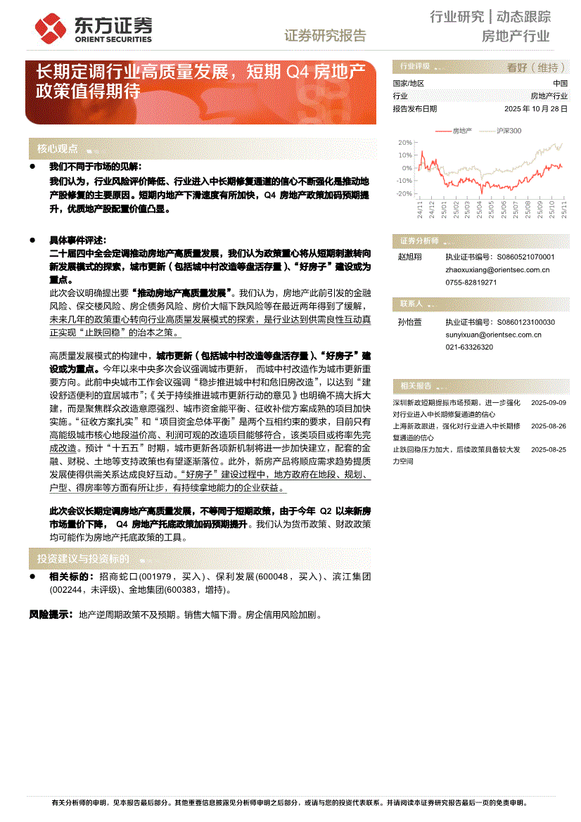 房地产行业:东方证券-房地产行业动态跟踪:长期定调行业高质量发展,短期Q4房地产政策值得期待-251028