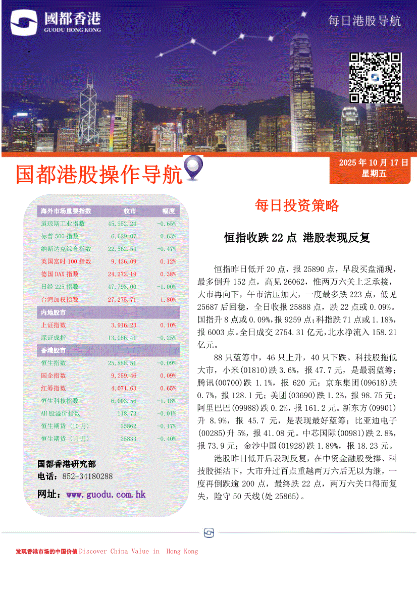 国都证券(香港)-每日港股导航-251017