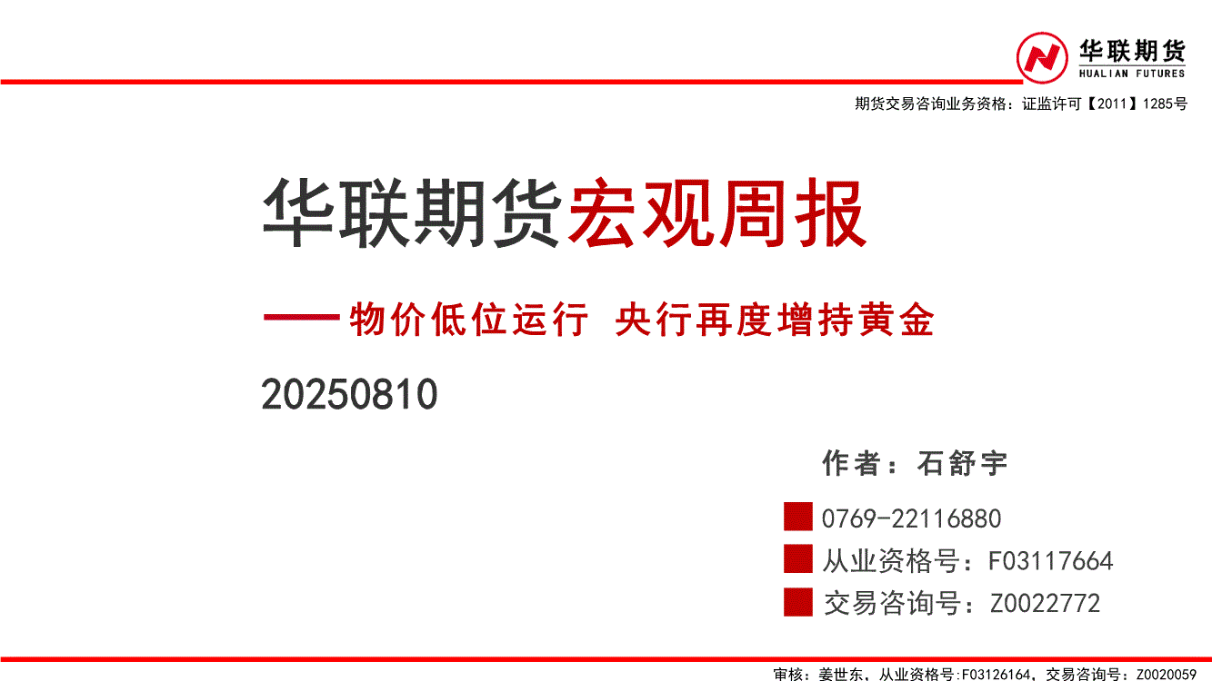 华联期货-宏观周报:物价低位运行,央行再度增持黄金-250810