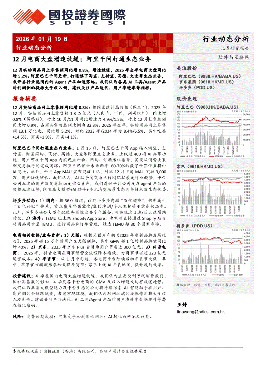 软件与互联网行业:国投证券国际-软件与互联网行业动态分析:12月电商大盘增速放缓;阿里千问打通生态业务-260119