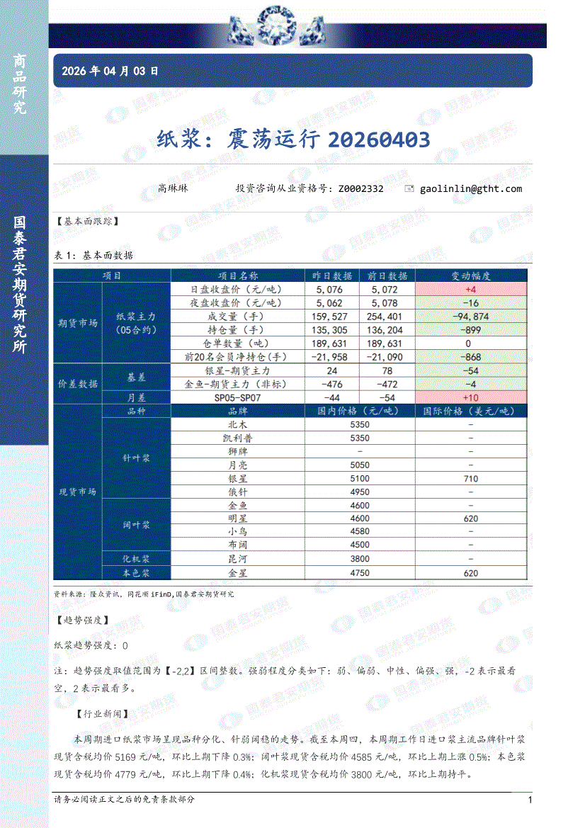 国泰君安期货-纸浆:震荡运行-260402