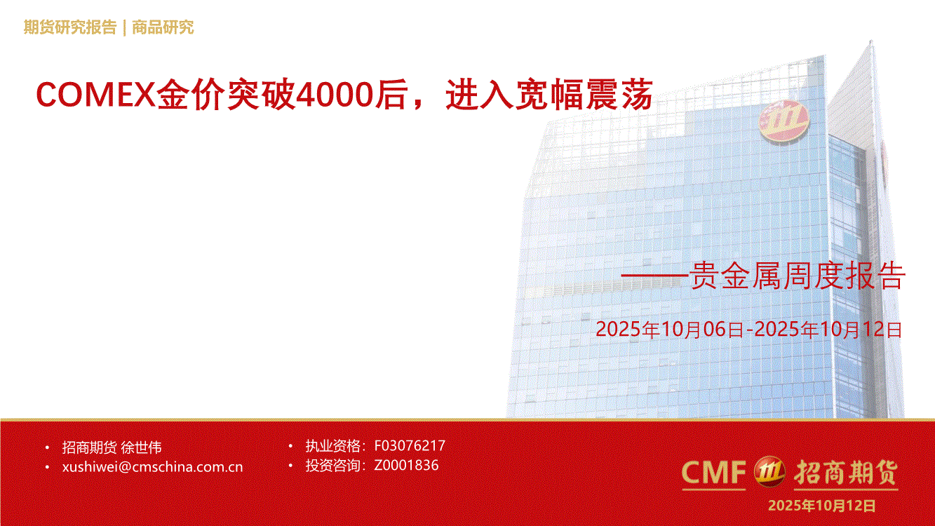 招商期货-贵金属周度报告:COMEX金价突破4000后,进入宽幅震荡-251012