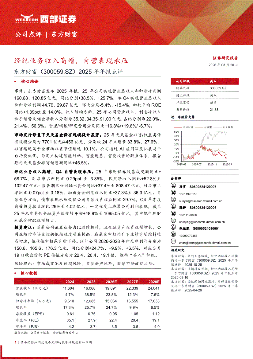 东方财富:西部证券-东方财富-300059-2025年年报点评:经纪业务收入高增,自营表现承压-260320