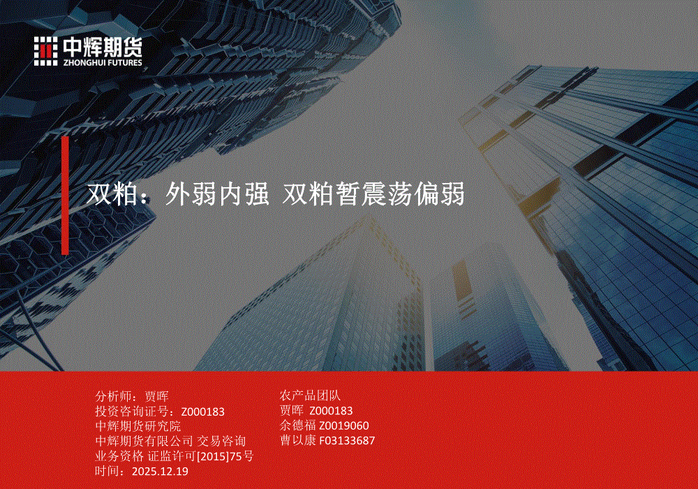 中辉期货-双粕:外弱内强,双粕暂震荡偏弱-251219