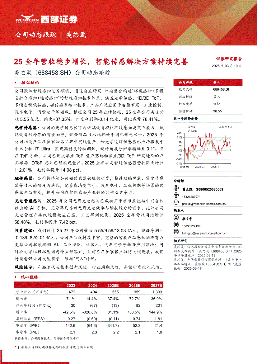 美芯晟:西部证券-美芯晟-688458-公司动态跟踪:25全年营收稳步增长,智能传感解决方案持续完善-260310