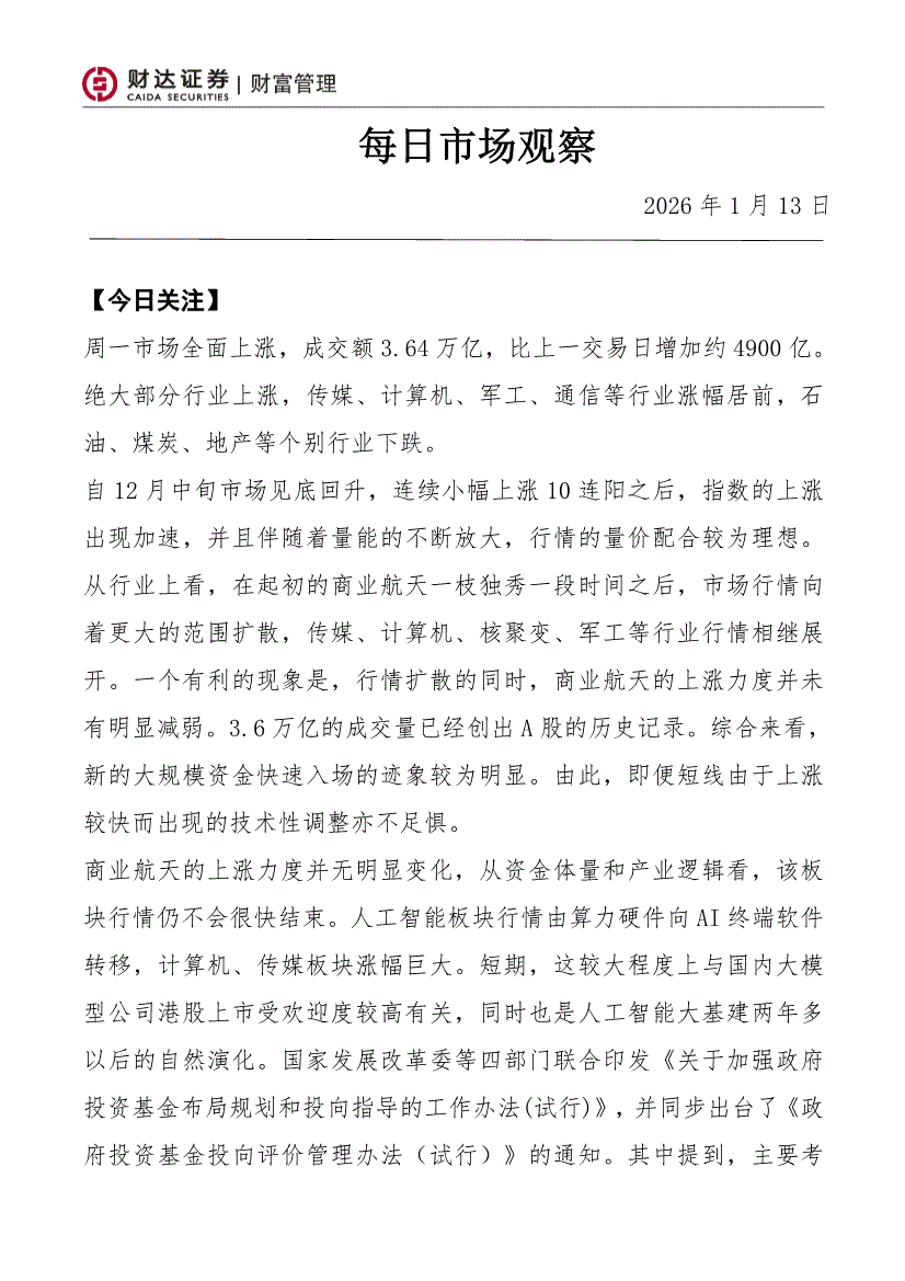 财达证券-每日市场观察-260113