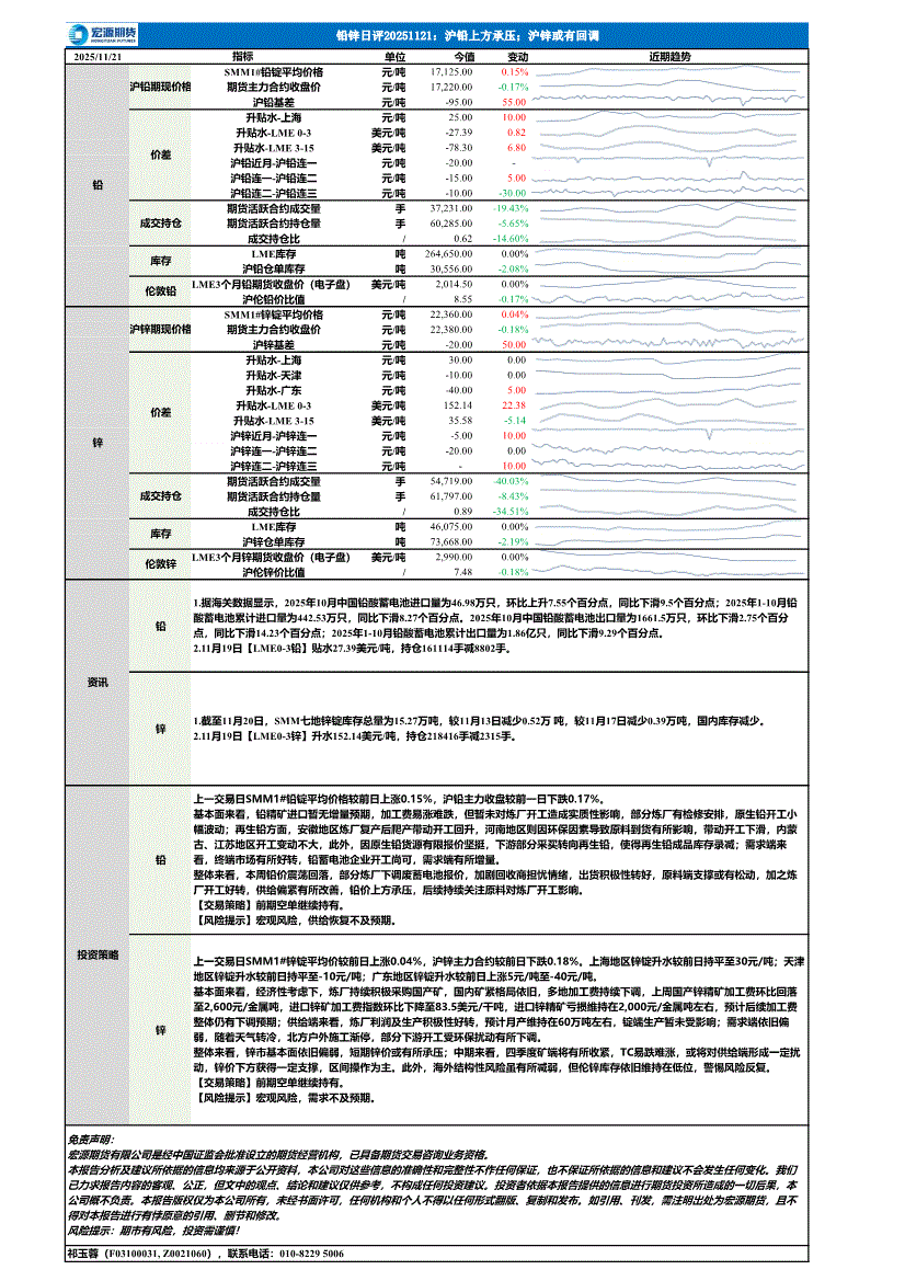 宏源期货-铅锌日评:沪铅上方承压;沪锌或有回调-251117
