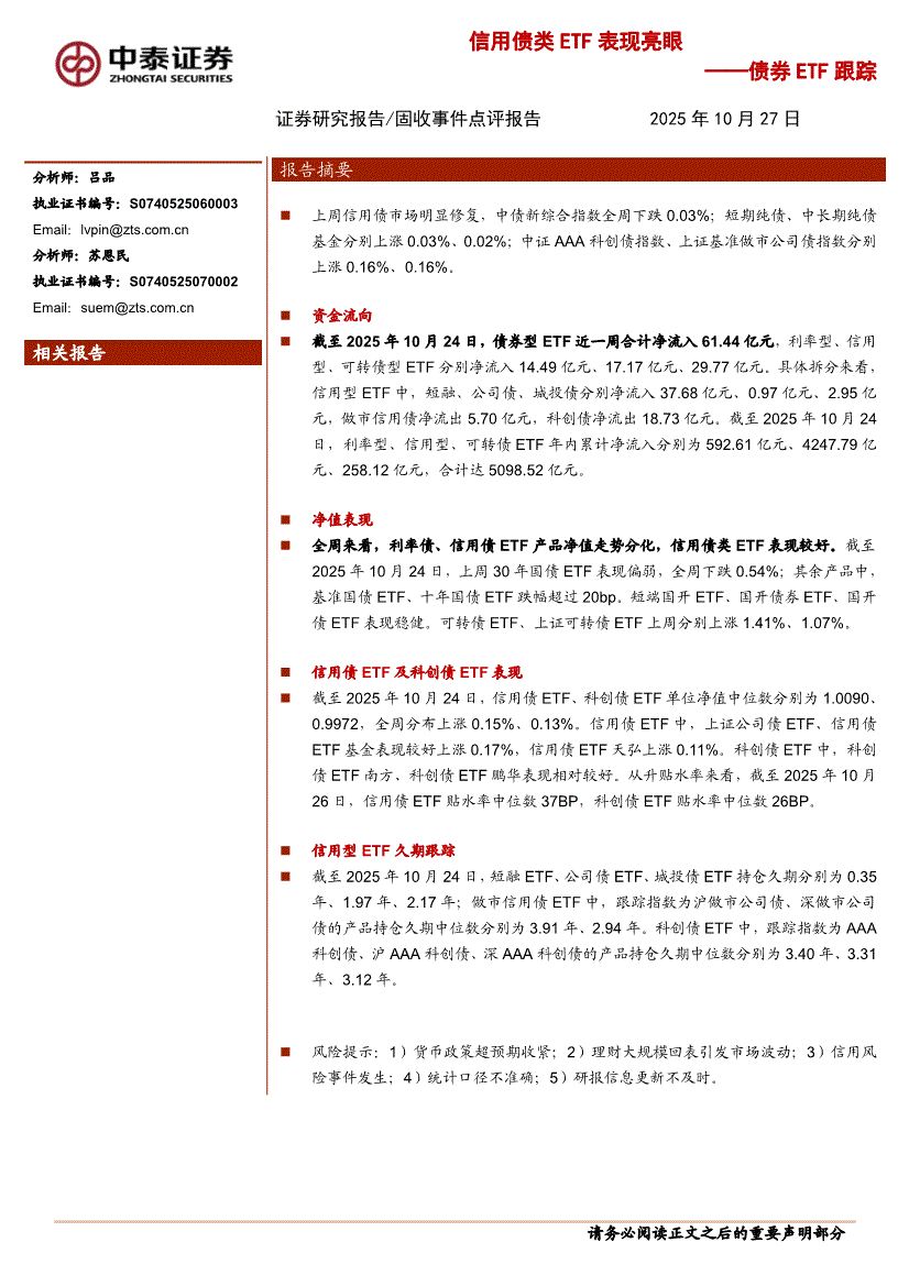 中泰证券-债券ETF跟踪:信用债类ETF表现亮眼-251027