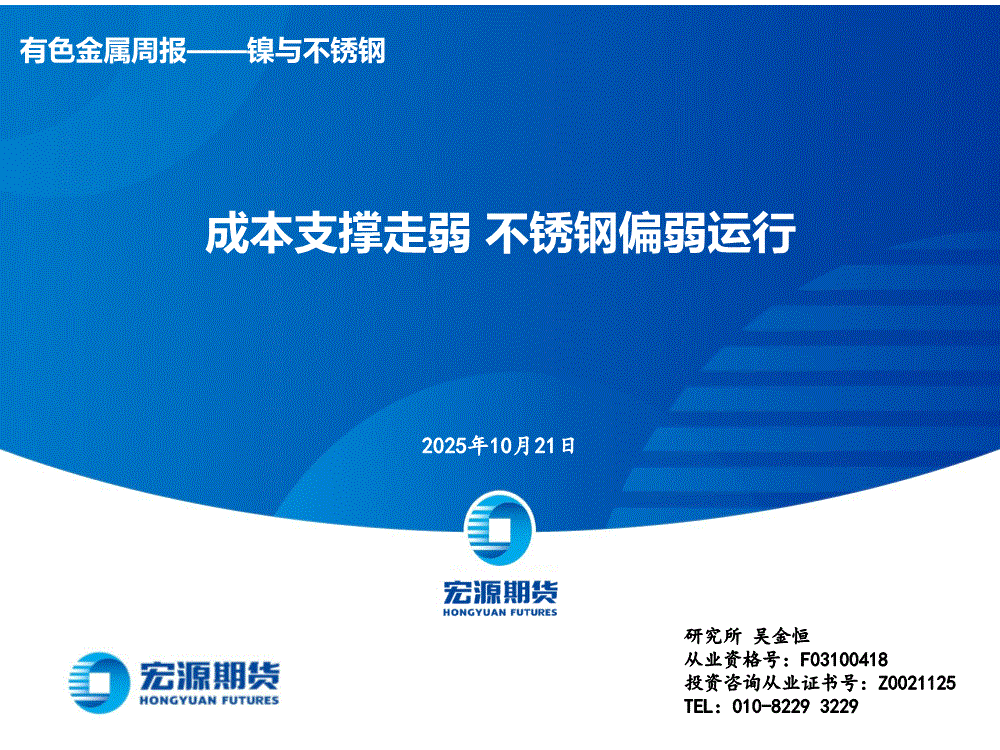 宏源期货-有色金属周报~镍与不锈钢:成本支撑走弱,不锈钢偏弱运行-251021