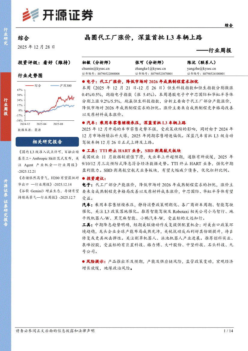 综合行业:开源证券-综合行业周报:晶圆代工厂涨价,深蓝首批L3车辆上路-251228
