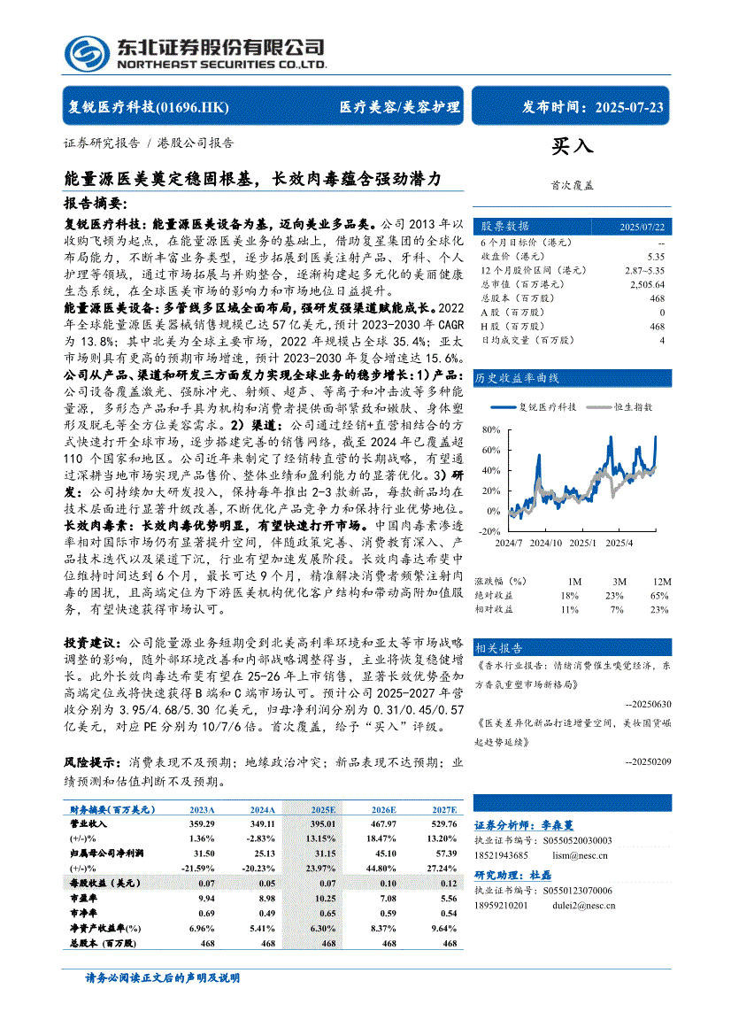 复锐医疗科技:东北证券-复锐医疗科技-1696.HK-能量源医美奠定稳固根基,长效肉毒蕴含强劲潜力-250723
