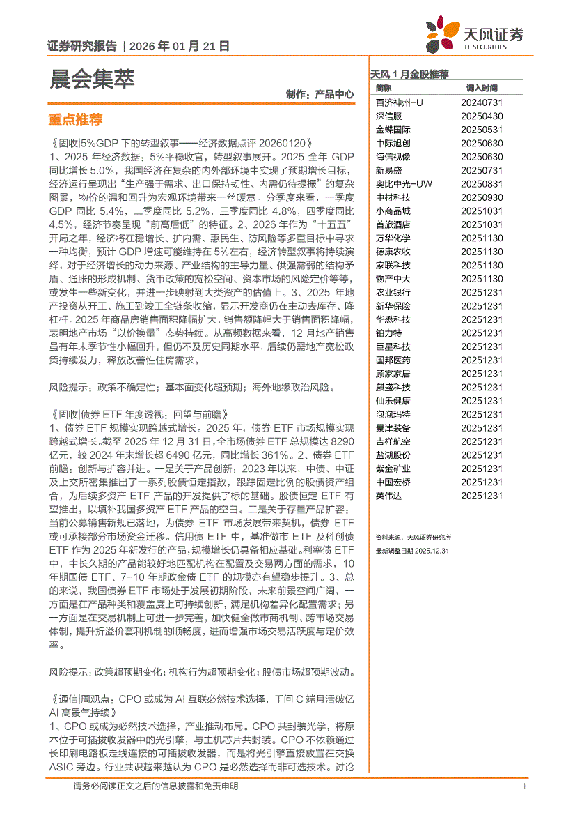 天风证券-晨会集萃-260121
