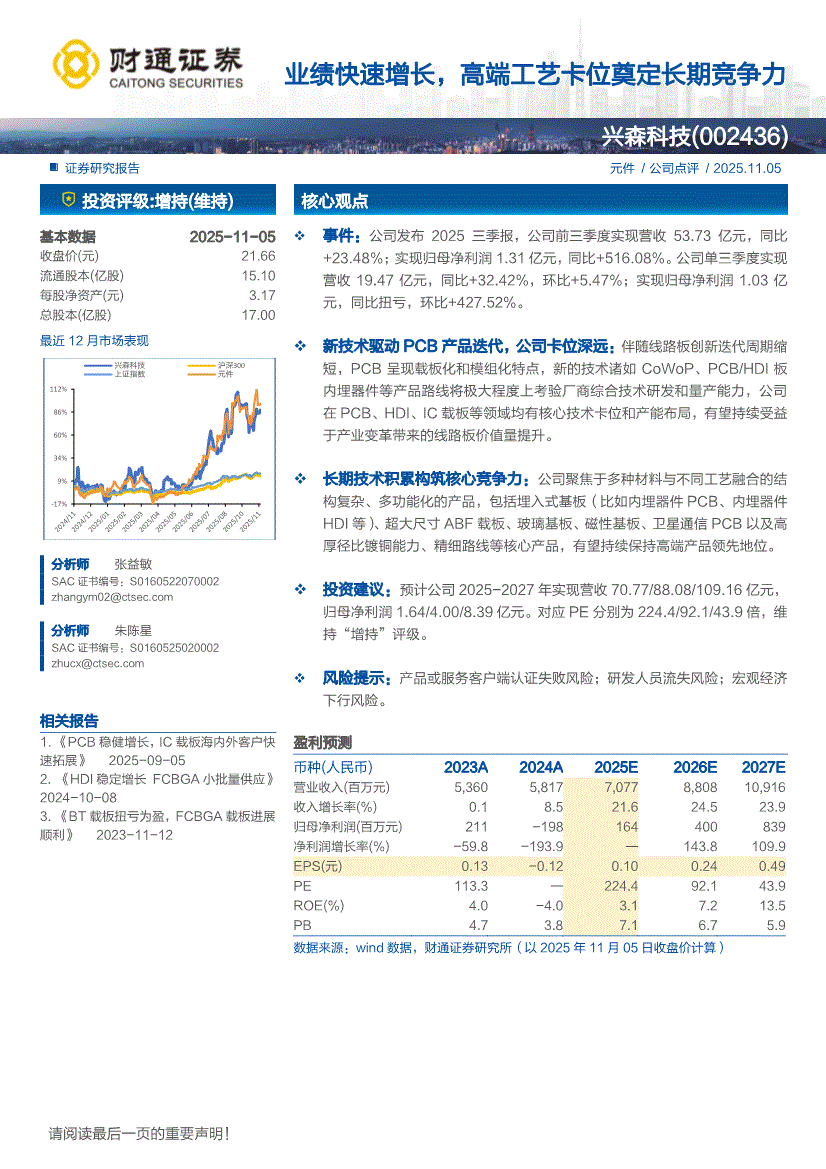 兴森科技:财通证券-兴森科技-002436-业绩快速增长,高端工艺卡位奠定长期竞争力-251105