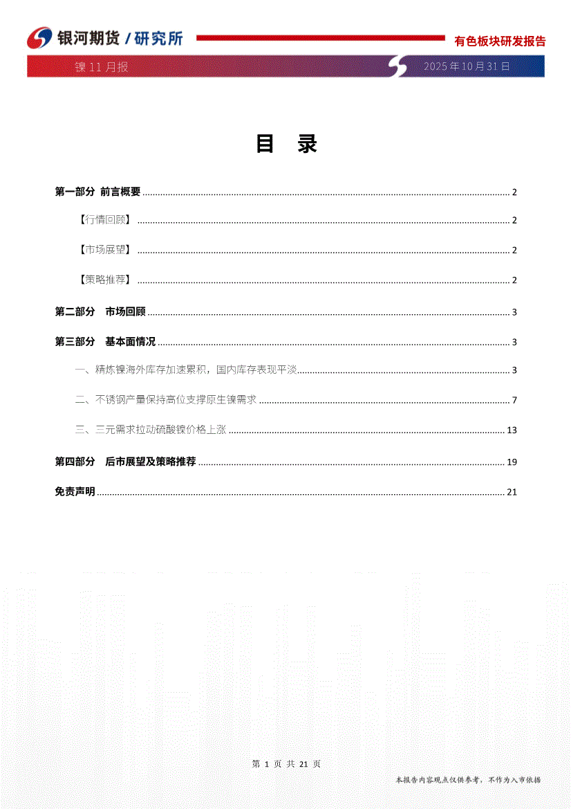 银河期货-镍11月报:供需宽松,成本支撑,镍价宽幅震荡-251031