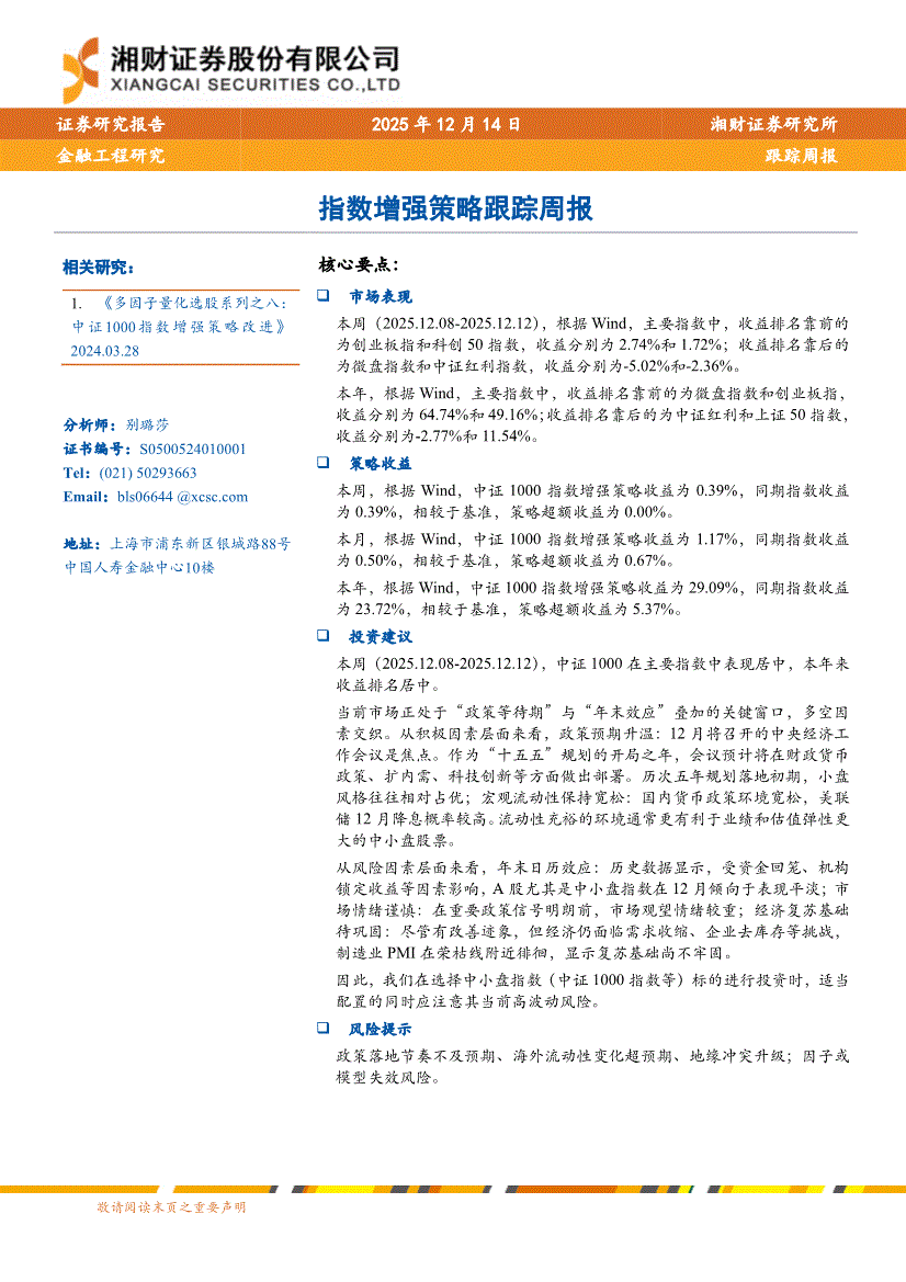 湘财证券-指数增强策略及因子跟踪周报-250414