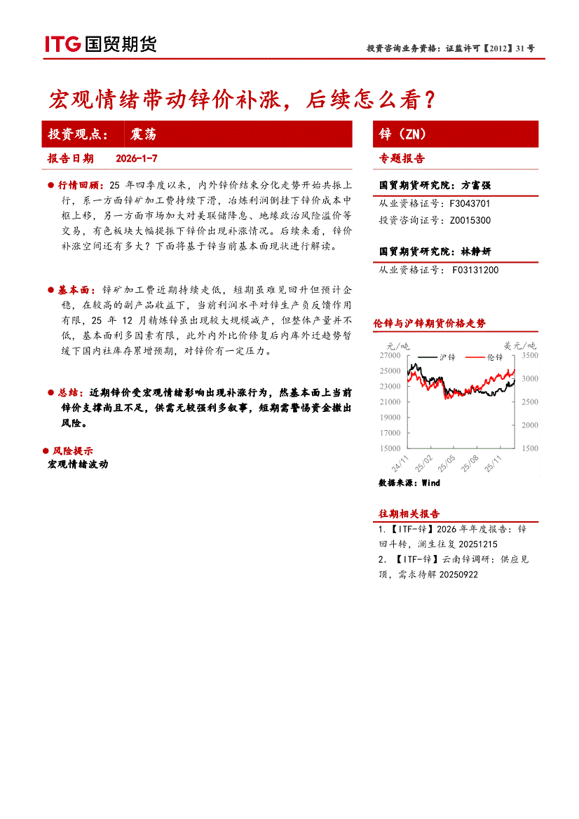 国贸期货-锌(ZN)专题报告:宏观情绪带动锌价补涨,后续怎么看?-260107