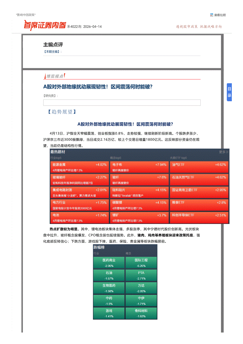 中原证券-市场分析:元件半导体领涨,A股震荡上行-260414