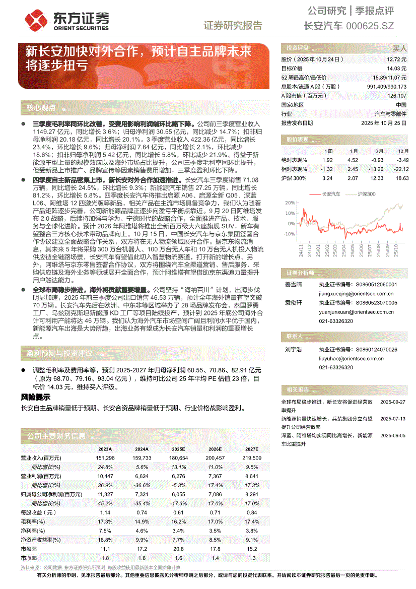 长安汽车:东方证券-长安汽车-000625-新长安加快对外合作,预计自主品牌未来将逐步扭亏-251025