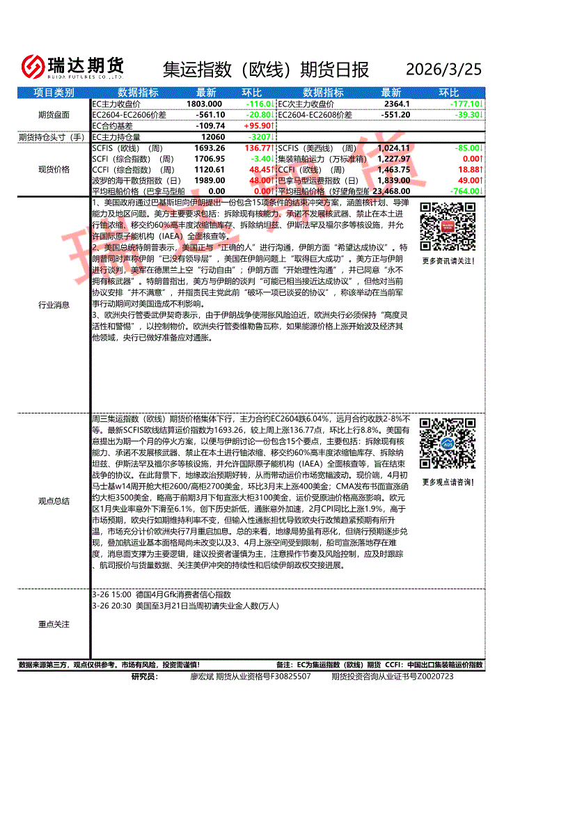 瑞达期货-集运指数(欧线)期货日报告-260325