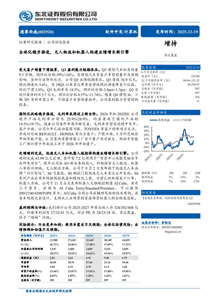 德赛西威:东北证券-德赛西威-2920.HK-全球化稳步推进,无人物流和机器人构建业绩增长新引擎-251219