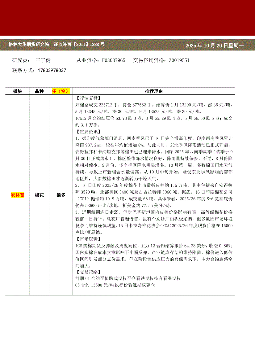 格林大华期货-早盘提示~棉花、苹果、原木-251027